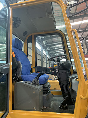 This loader is equipped with a YUNNEI 37KW engine, and the rear part adopted the arc-shaped European style, which greatly reduced the length of this machine without affecting the overall frame. Meanwhile, the WS908 loader equipped with standard bucket 0.5 m3 and hydraulic torque converter pilot control. It’s luxury cabin inside has a comfortable seat, adjustable steering wheel and cabin heater. Overall this machine is a very economical and practical small loader.